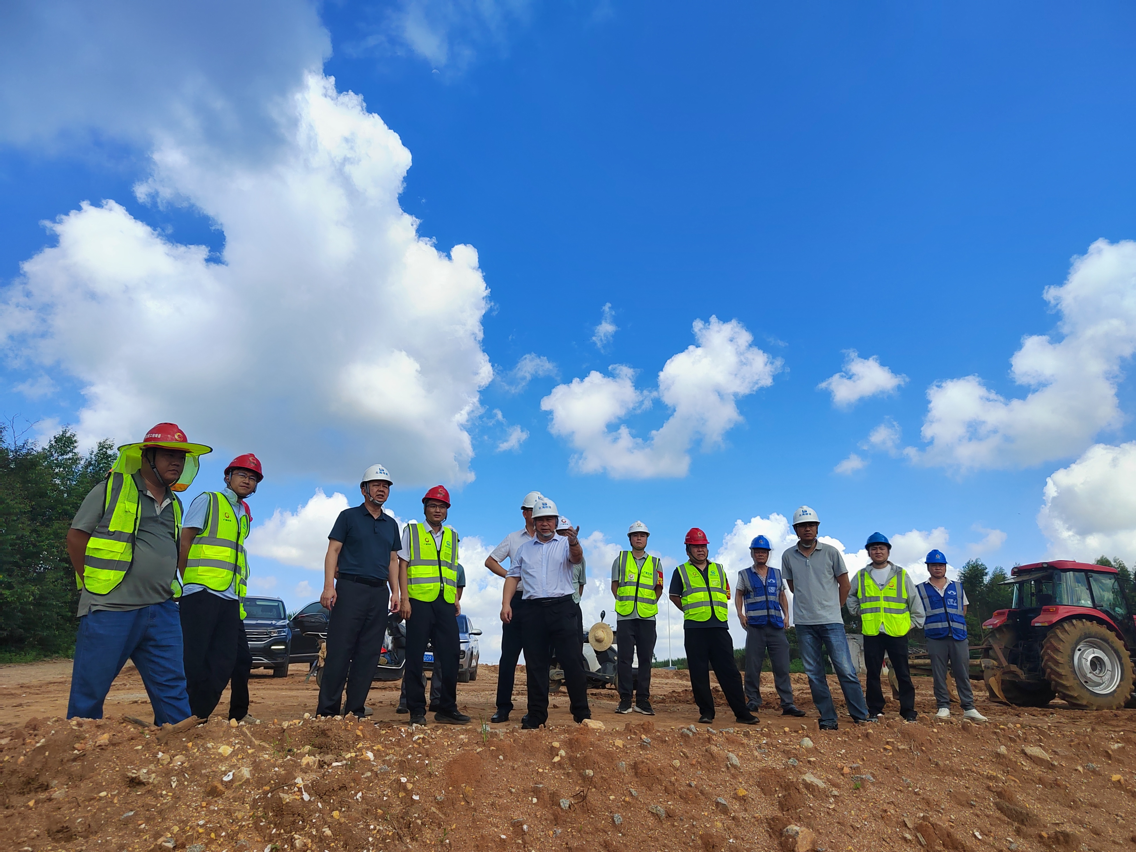 慰問活動(dòng)結(jié)束后,公司領(lǐng)導(dǎo)和各參建單位代表在施工現(xiàn)場(chǎng)召開了項(xiàng)目協(xié)調(diào)會(huì)。在詳細(xì)了解項(xiàng)目建設(shè)進(jìn)展情況和問題后,沈飛強(qiáng)調(diào),正在施工的G228丹東至東興廣西濱海公路工程(大風(fēng)江至高德段)官井村段是欽州大風(fēng)江大橋至合浦西場(chǎng)線的重要連接路段,按照市委政府下達(dá)的2024年9月30日前初步通車的要求,時(shí)間緊、任務(wù)重。近一個(gè)月以來,施工現(xiàn)場(chǎng)連續(xù)18天下雨且暴雨和驕陽反復(fù)交替,這對(duì)工程施工影響非常大,給業(yè)主、代建和施工單位按時(shí)按質(zhì)地完成任務(wù)帶來了嚴(yán)峻考驗(yàn)。各單位必須加大統(tǒng)籌力度,合理調(diào)度時(shí)間、資金、人員和設(shè)備等資源,在未來的34天里風(fēng)雨兼程、日夜奮戰(zhàn),時(shí)刻緊繃安全弦,高質(zhì)高效完成通車目標(biāo)。